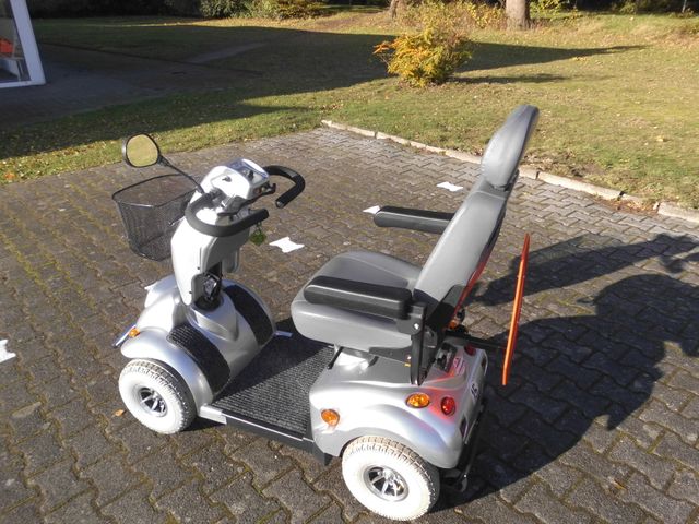 - verstellbare Lenksäule, Elektromagnetbremse, Korb vorne, Beleuchtung mit Blinkanlage, Leichtmetallfelgen, Sitz schwenkbar, Sitztiefe und -höhe einstellbar, Sitzbreite über Armlehnen verstellbar